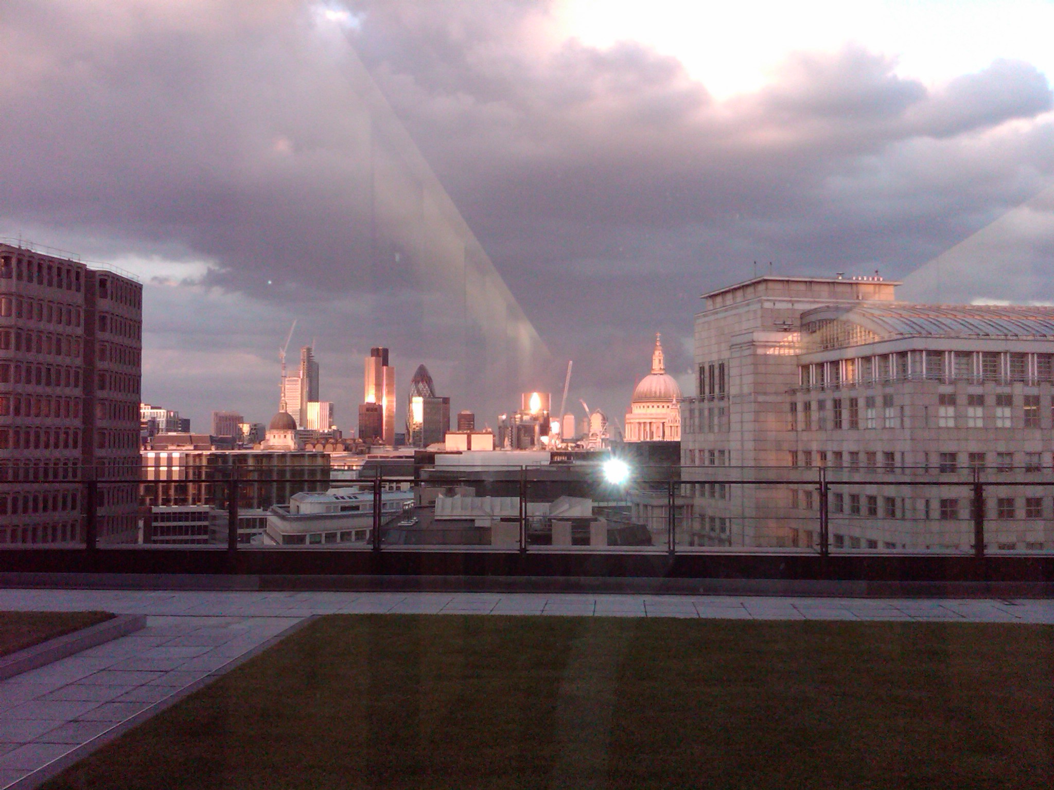 After all that cleantech knowledge transfer, what did the UK serve for dessert? A cocktail party with London-based cleantech entrepreneurs and investors at Taylor Wessing’s offices on the top floor wrap-around patio on a gorgeous London summer evening (below was the mis en scene).