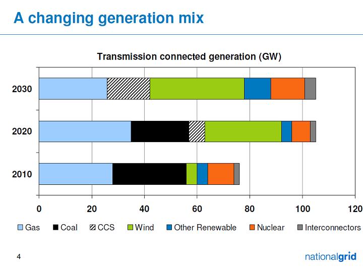 Something like 40% of energy capacity is going to be wind, with a vast majority of that coming from offshore wind. However, UK power generators like NationalGrid recognize that there needs to be a large redundancy due to the intermittent nature of wind as a resource. NationalGrid is planning primary failover in the form of LNG and CCS capacity to power conventional generation, replacing virtually 100% of existing coal-fired plants with carbon-capture versions. The best hope to reduce this reliance on traditional energy sources is to innovate a wind power storage solution that can be commercialized between now and the completion of the 2020 UK offshore wind initiative.