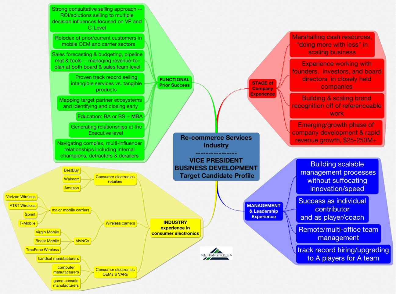 The Company is seeking a seasoned and accomplished business development executive with an unusual combination of skills. However, there is no question that the most critical skill is a proven ability to source, develop, close and make successful partners in the mobile and consumer electronics ecosystem. The VP Business Development will have a passion for and experience working with customers and colleagues to drive opportunities to closure, working with multiple internal champions, and influencers, identifying potential enterprise veto votes and derailers, and successfully navigating through to the finish line via a complex, often lengthy, and opaque landscape.